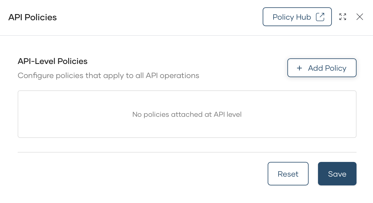 Policies allow you to enforce security, rate limiting, transformation, and other governance requirements on your APIs. With the Self-Hosted Gateway, you manage policies centrally through API Platform's Policy Hub, and they are automatically synchronized to your gateway.