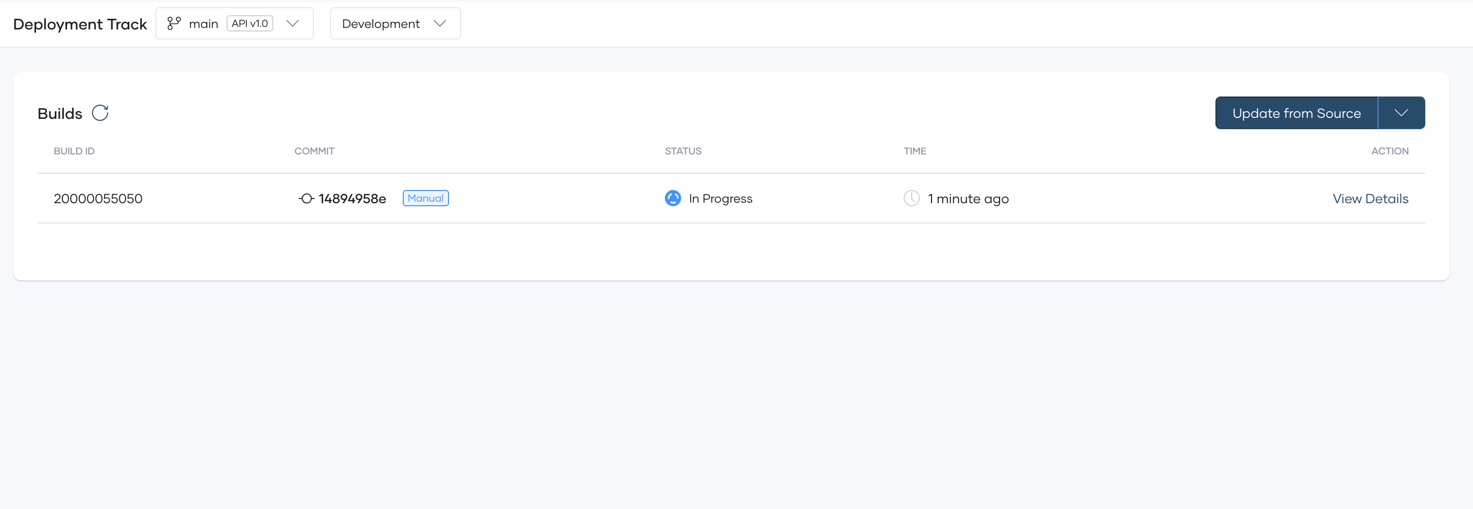 - If the build is in progress, you can view the Build information.