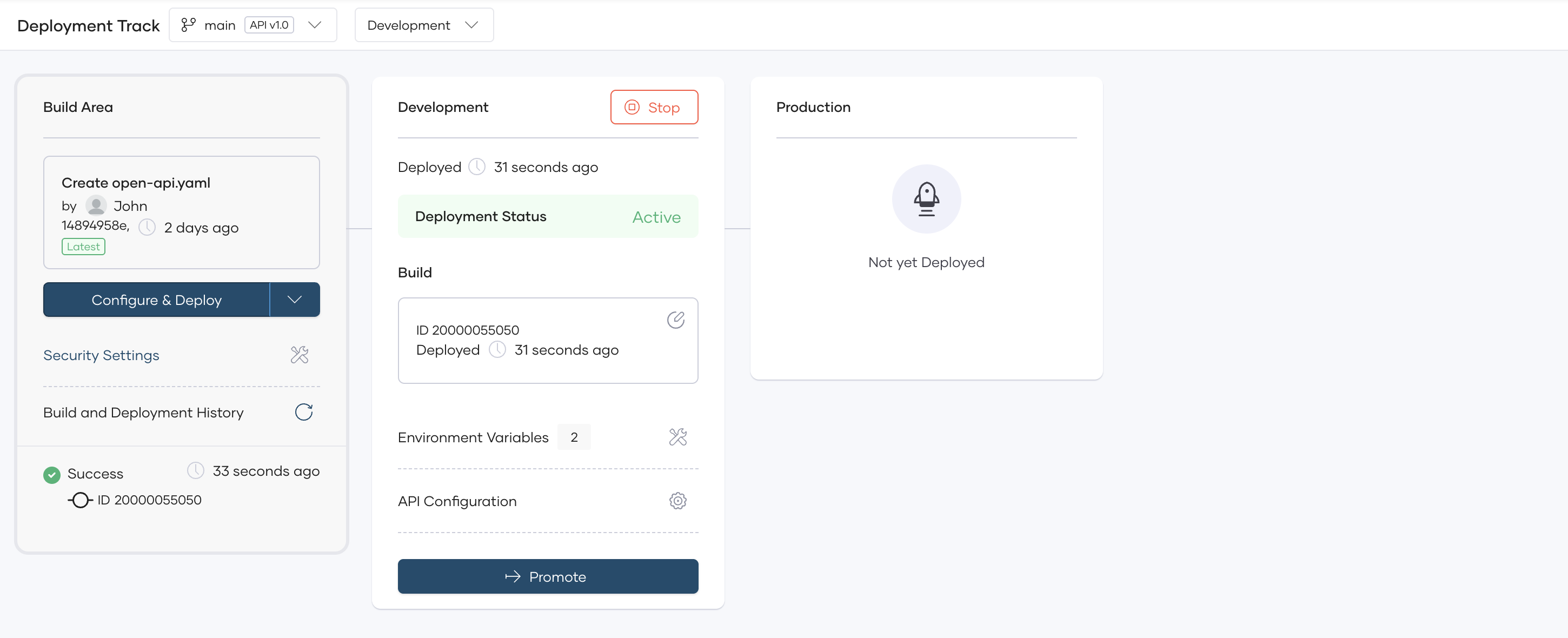 3. Once the build is completed, in the deploy navigation menu, in the Build Area card, click Configure & Deploy.