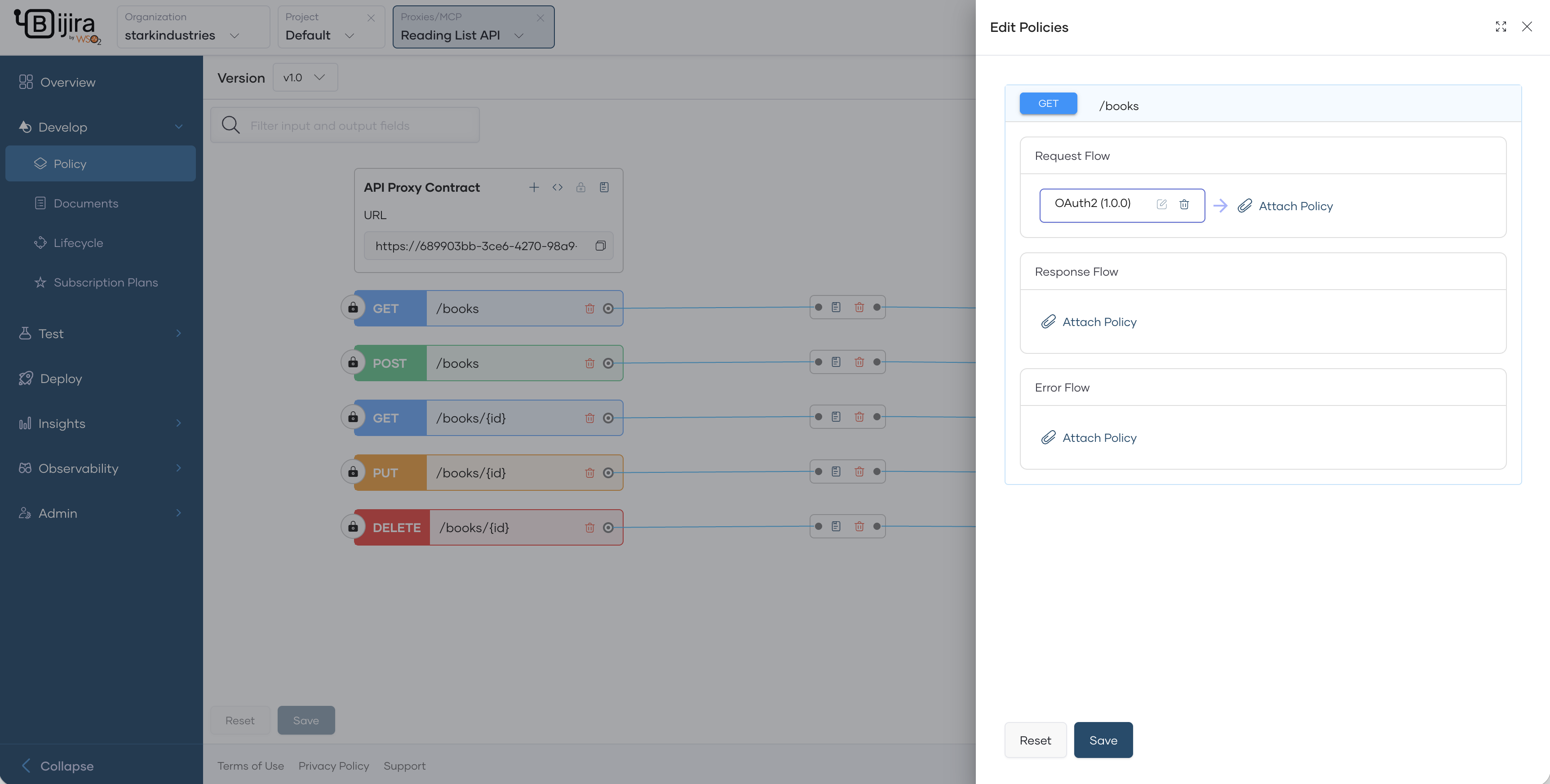 In the Edit Policies pane, click Attach Policy in the respective flow where you want to attach a policy.