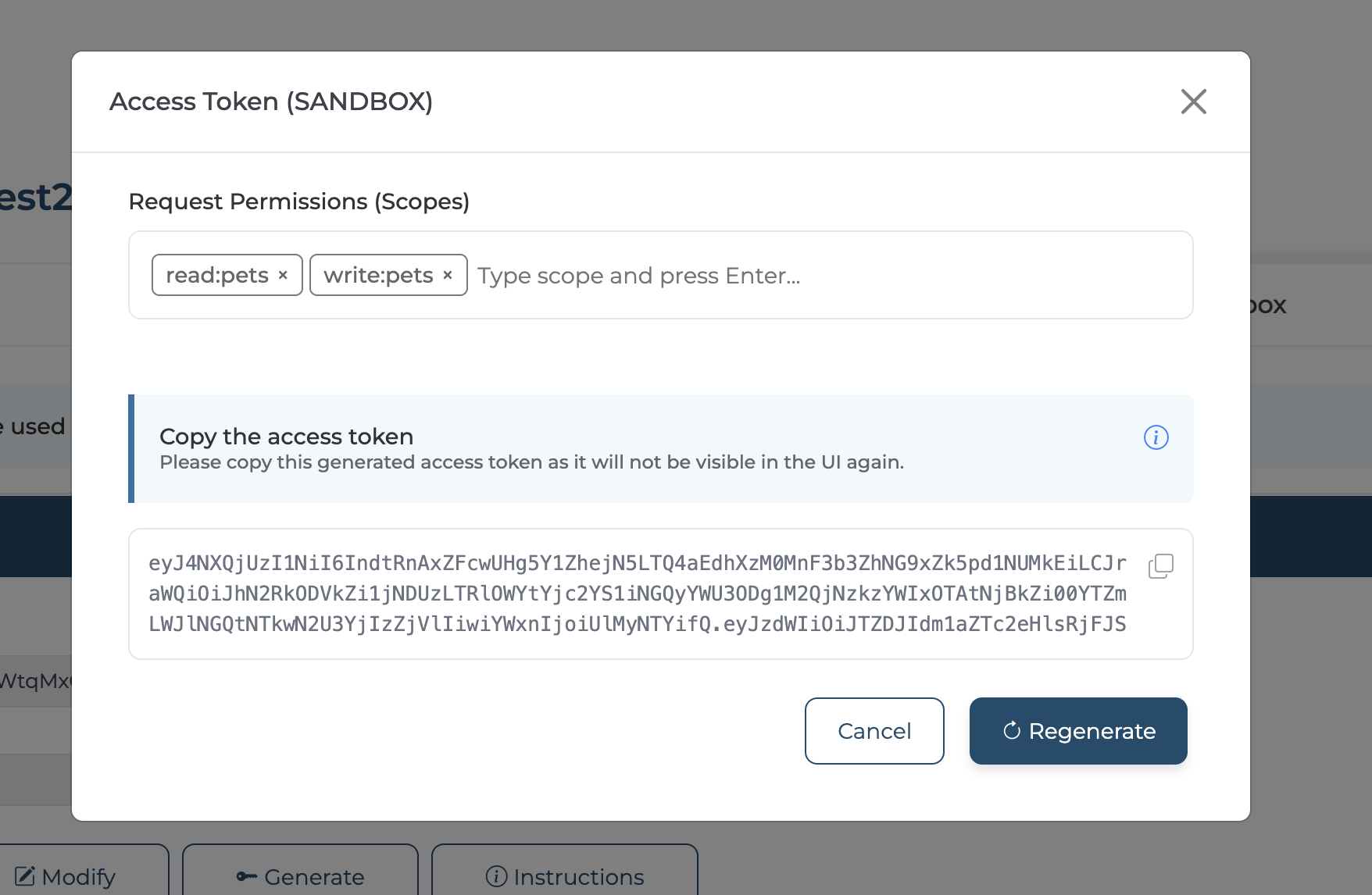Copy the displayed access token.