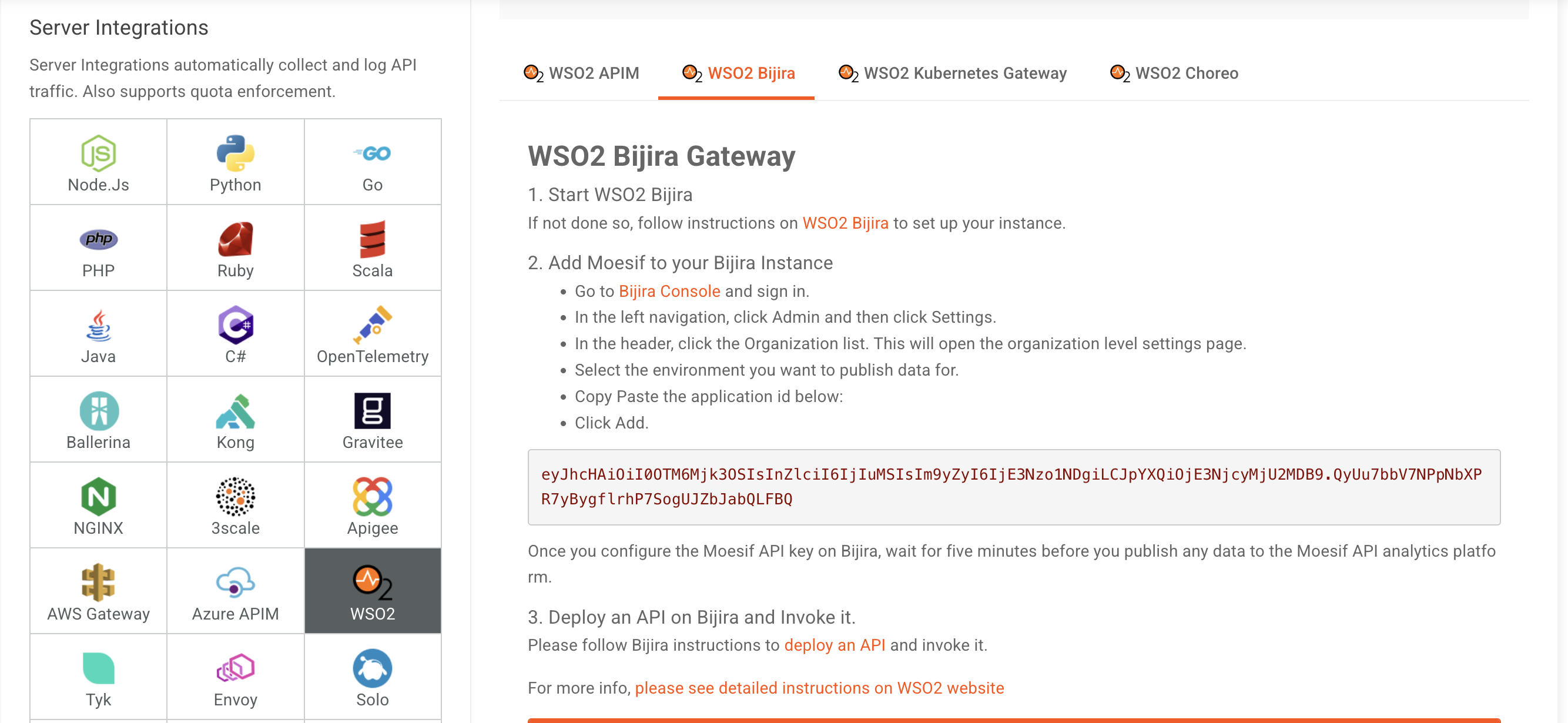 - From the WSO2 integration options, select WSO2 Bijira.