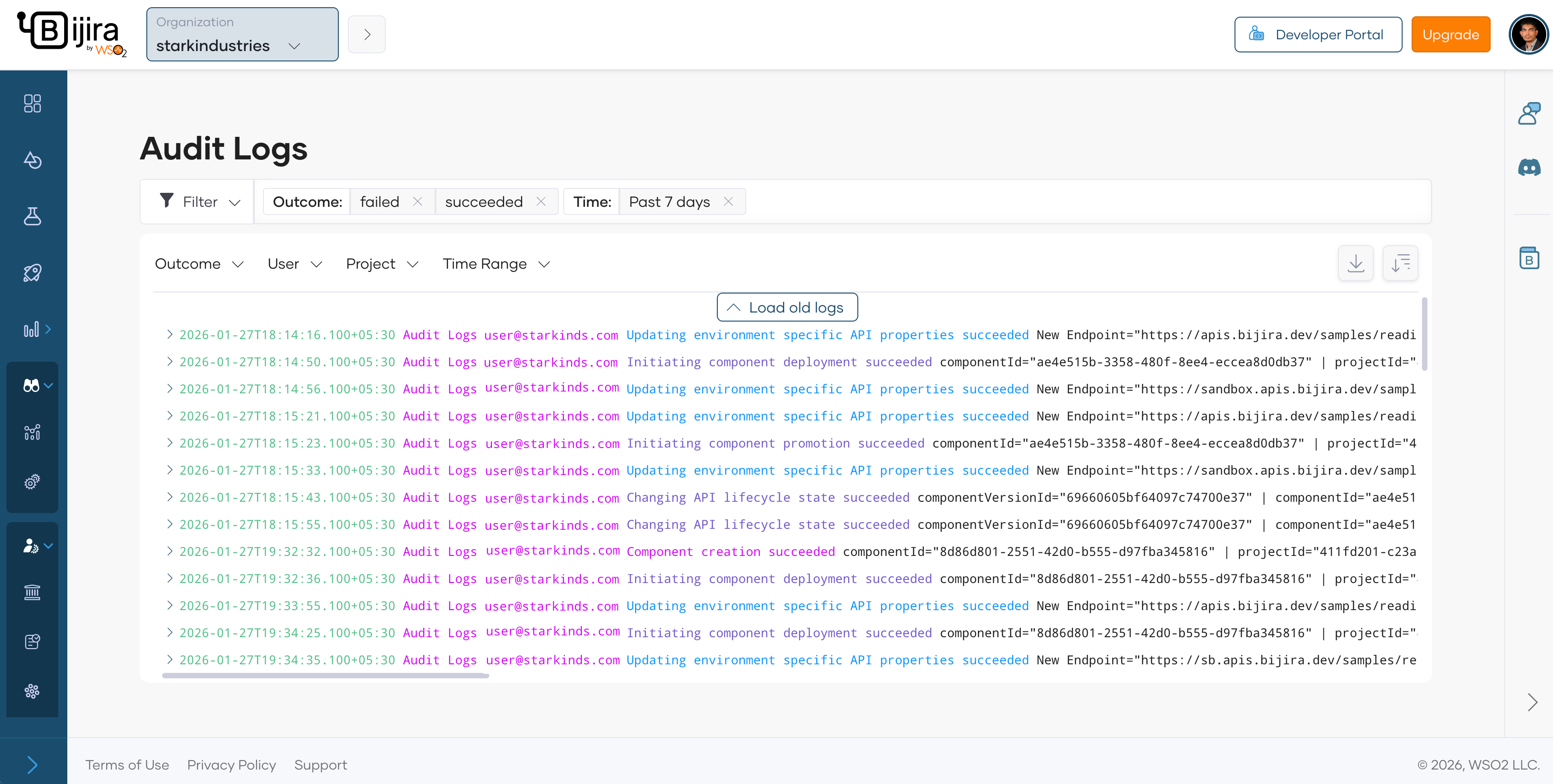In API Platform, organization administrators are allowed to view audit logs by default. If other members need to access organization-specific audit logs, the administrator can create a role with the relevant permission and assign it to members. For step-by-step instructions on how to create and assign a role with relevant permission, see Manage audit log access.
