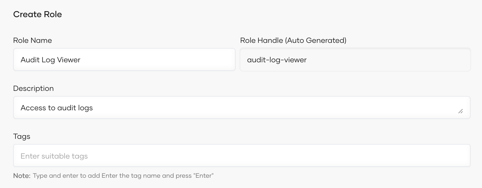 Follow the steps given below to create a role with audit log access permission and assign it to organization members who need access to audit logs: