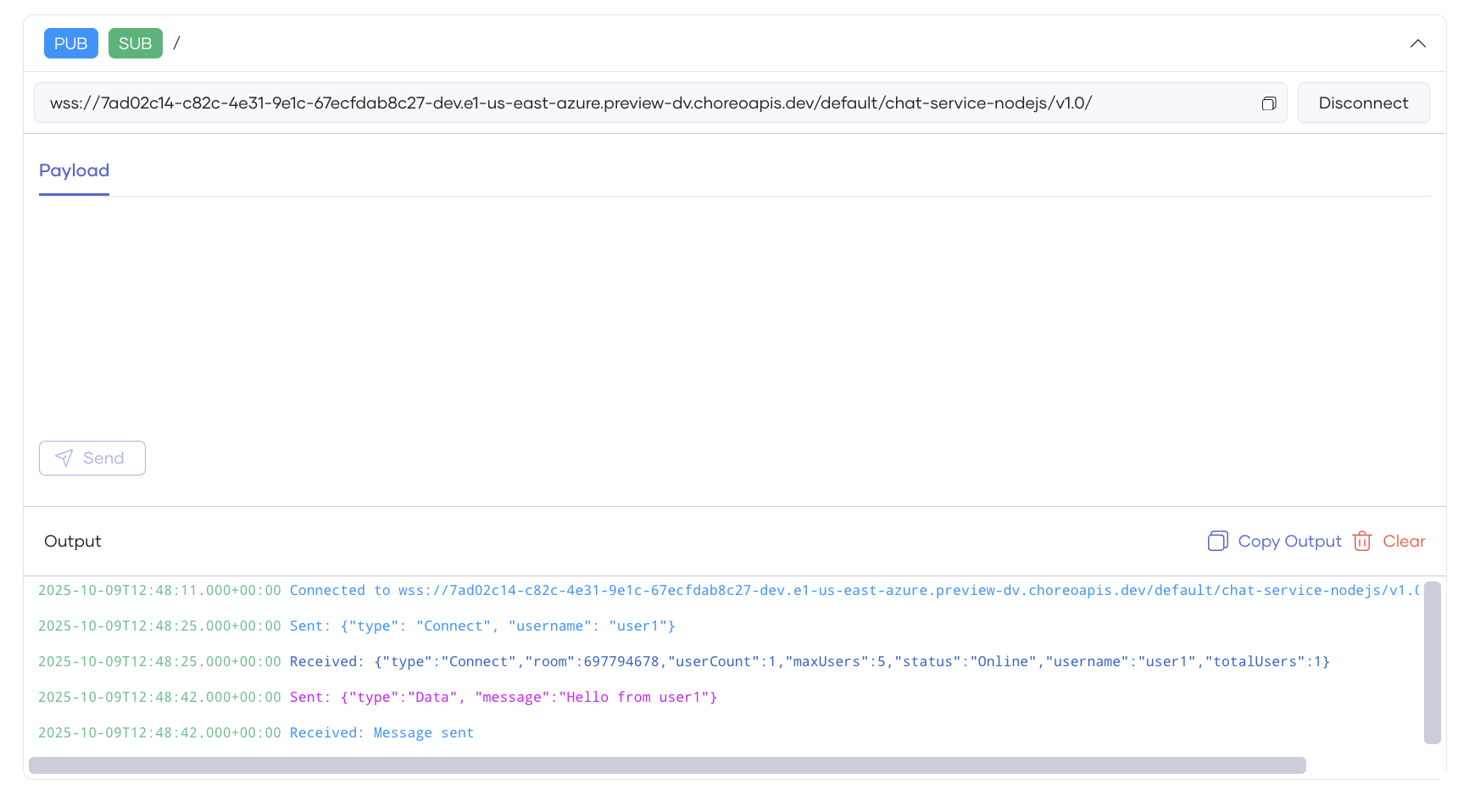 Test WebSocket Endpoints via the WebSocket Console¶